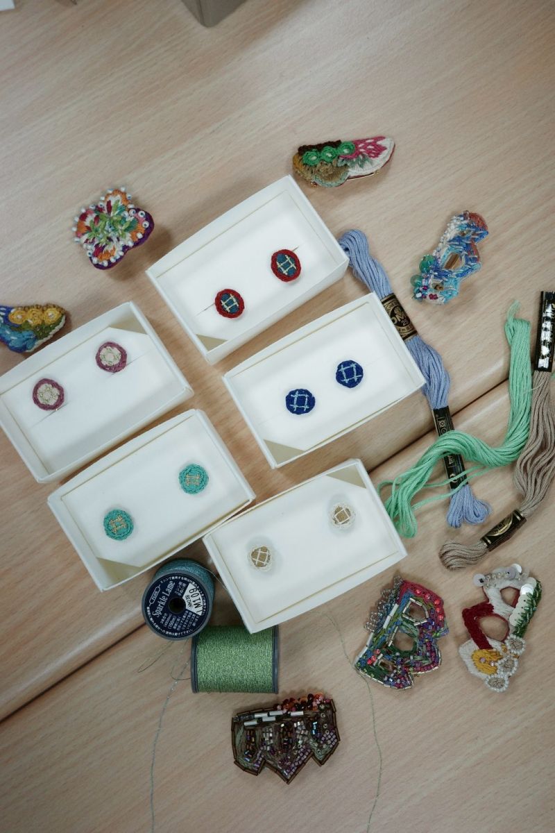 ●完成作品:刺繡耳環1.2*1.2 cm -1件