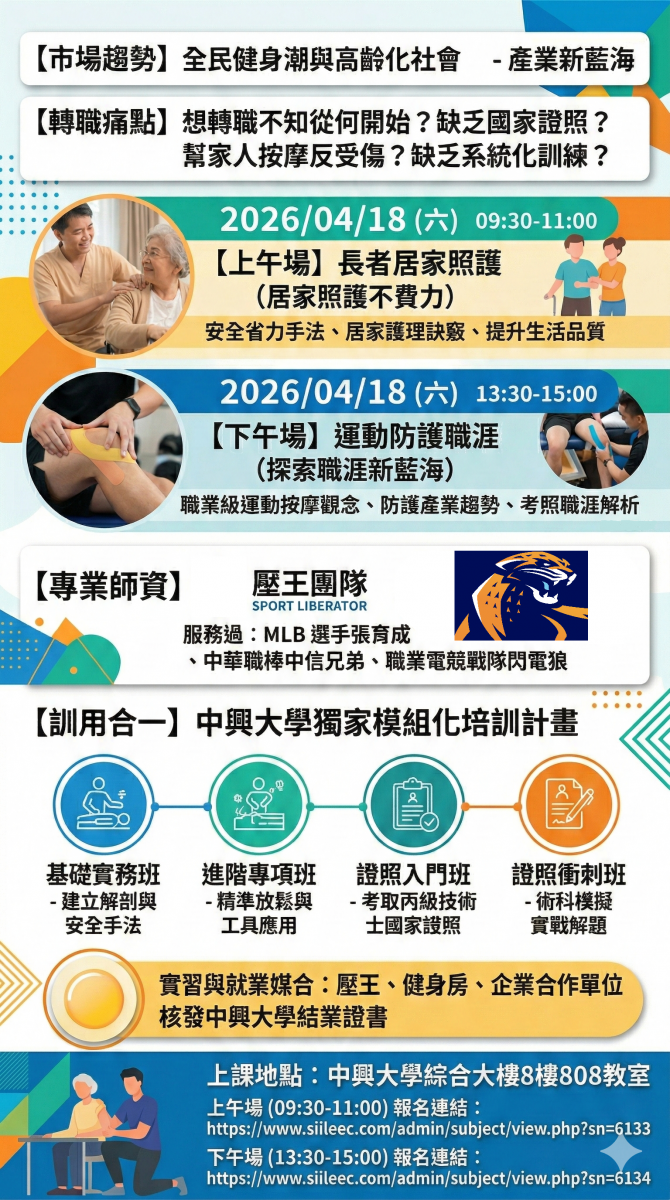 你是想為家中長輩減輕痠痛卻怕失手受傷?還是熱愛運動,想把興趣轉化為職業,卻苦無國家級證照指引?