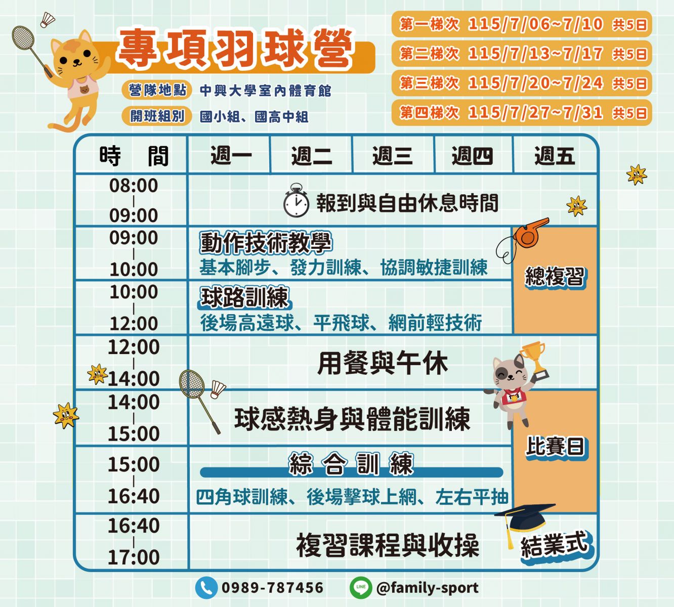 *飛夢力*(2026夏)07/20-07/24第三梯5日羽球營