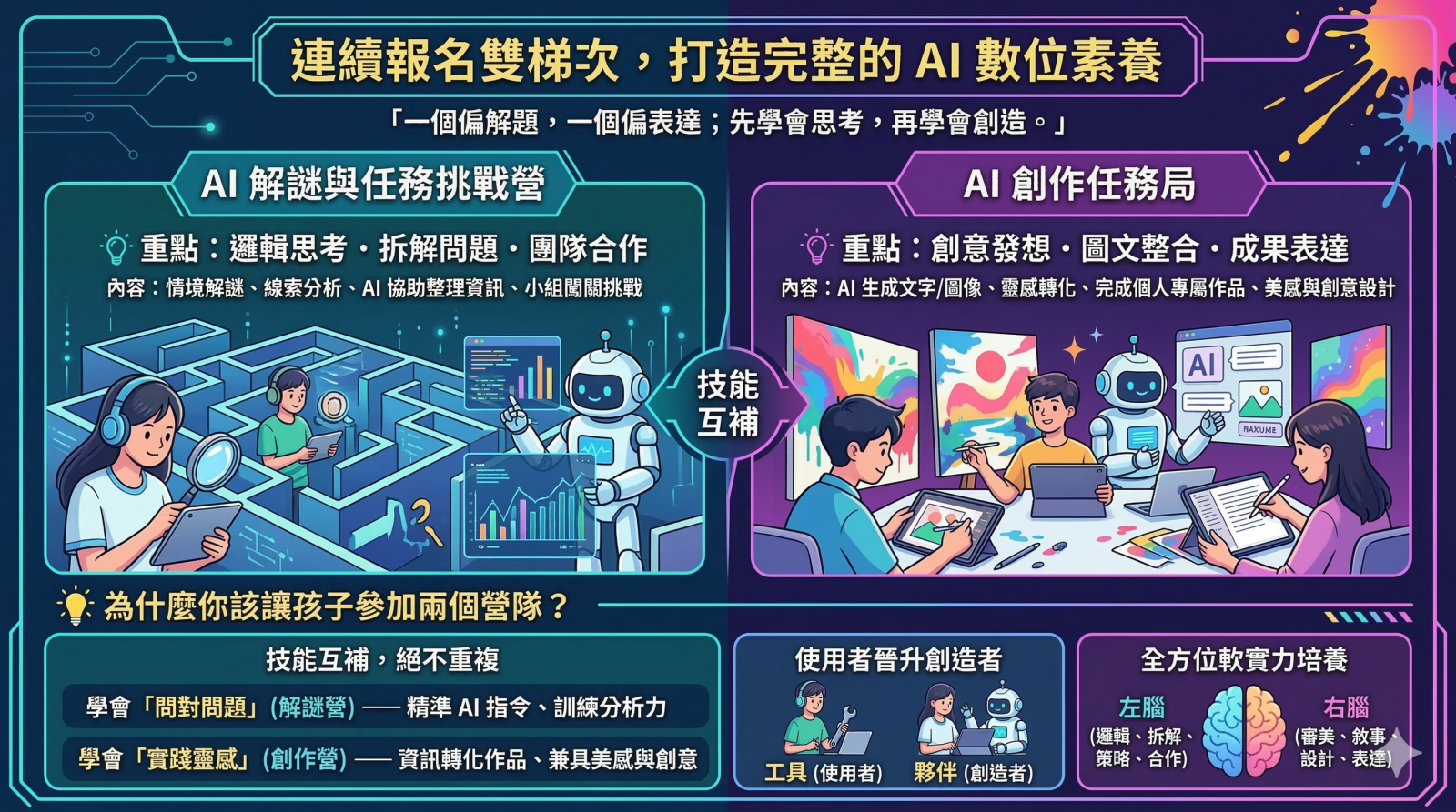 解法建構 透過任務卡與線索卡闖關 練習使用AI整理資訊 建立合作節奏 |
